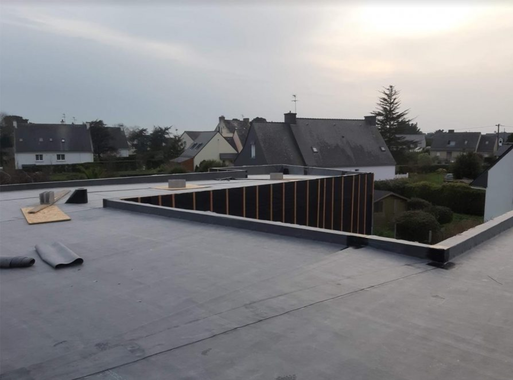 Pose et réfection de systèmes d'étanchéité pour terrasses accessibles ou inaccessibles. Membranes, relevés, points singuliers traités avec soin pour une protection durable contre les infiltrations.